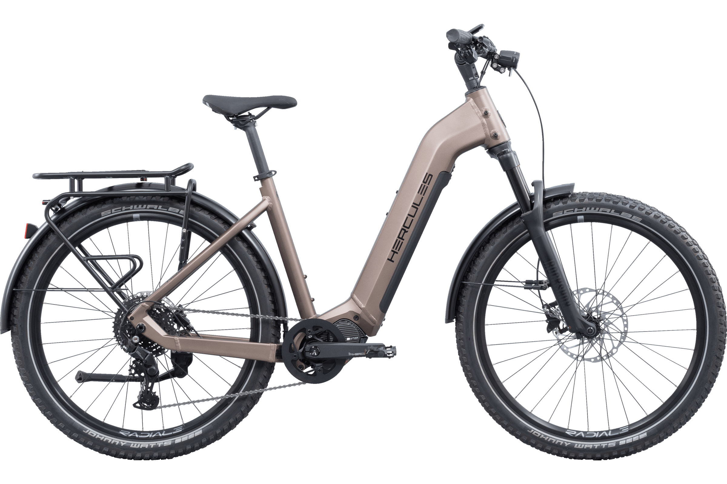 A Hercules NOS SUV 2.3 (2025 – Wave) é uma e-bike premium que combina conforto urbano com capacidade para trilhos leves. Vem equipada com o motor Shimano STEPS EP800 de 250 W (pico de 500 W) e 85 Nm, oferecendo assistência suave e potente até 25 km/h.