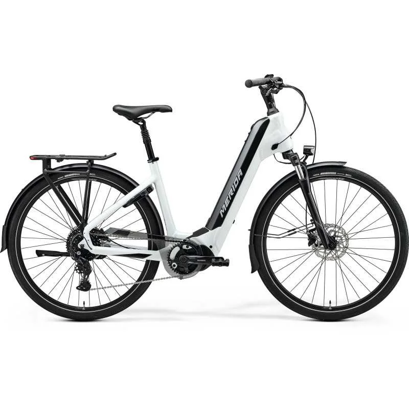 A Merida eSpresso City 300 SE EQ 418Wh é uma bicicleta elétrica urbana projetada para oferecer conforto e praticidade nos deslocamentos diários. Com um quadro de alumínio leve e resistente, possui um design de entrada baixo que facilita o embarque e desembarque, tornando-a ideal para uso urbano.