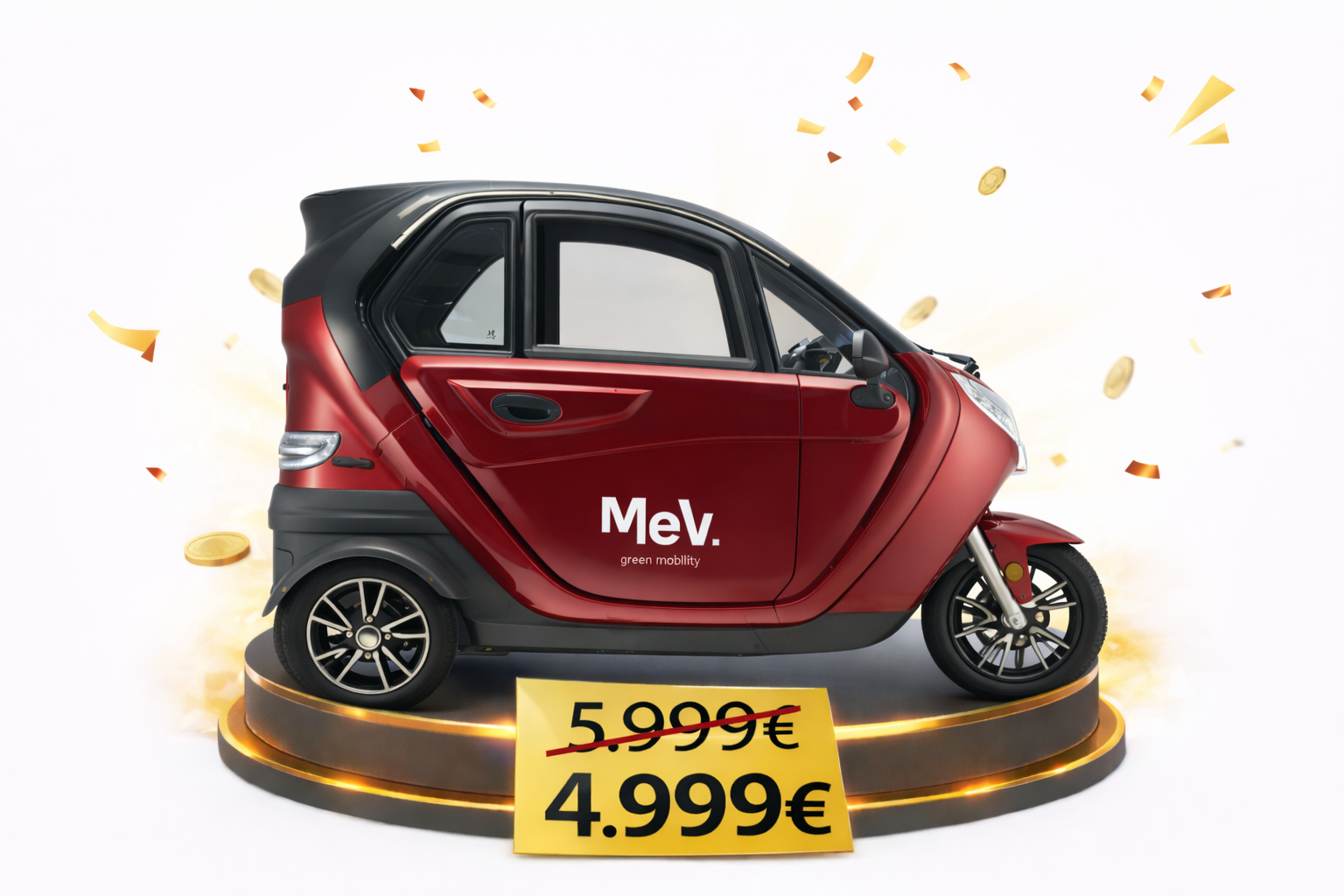Ciclomotor de três rodas fechado, com tudo o que precisa para o seu dia a dia. Com 45kmh de velocidade máxima e lugar para 2 passageiros.