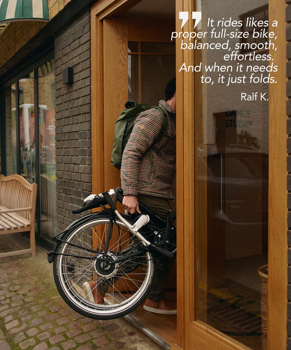 Com o seu hub tudo-em-um, a Bastille E totalmente equipada pesa apenas 16,7 kg. Depois de desdobrada, é uma das bicicletas elétricas mais leves do mercado, proporcionando sensações únicas de velocidade e fluidez.